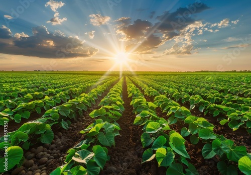 Plantation field with vegetables, scenic landscape agriculture, farmland, created with AI