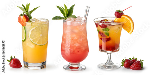 Planters Punch cocktail PNG isolated on transparent background with pineapple garnish for tropical bar