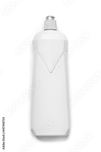 Plastic bottle for household chemicals, detergents on a white background, top view.