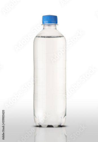 bottle, plastic, full, isolated, blue, shadow, small, transparent, unlabeled, container, water, drink, white, liquid, beverage, milk, glasses, clean, object, clear, fresh, healthy, mineral, cold, medicine, cap, blank, nobody