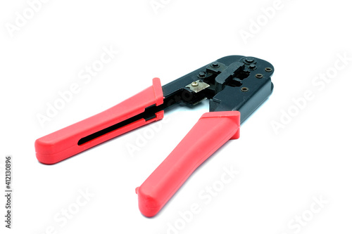 isolated, tool, white, red, equipment, metal, steel, work, plier, wrench, object, black, plastic, screwdriver, repair, construction, network, sharp, handle, hand, spanner, tool, industry, knife