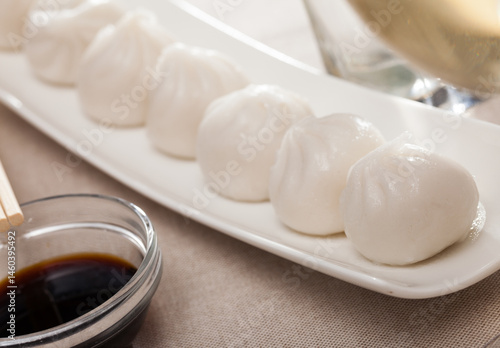 Plate of appetizing steamed dim sum – traditional Chinese dish