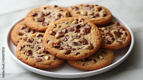 Plate of Freshly Baked Chocolate Chip Cookies on a Marble Surface