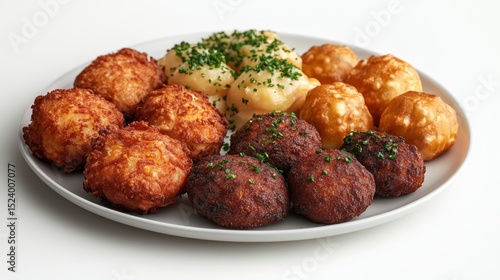 food, plate, meatball, potato, dish, fried, ball, meal, cookery, snack, comfort, delicious, tasty, healthy, dinner, lunch, breakfast, homemade, eatery, german, european, party, celebration, finger food, lunchtime