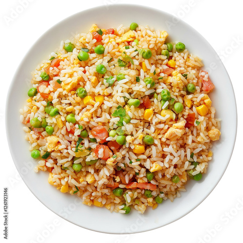 plate of Fried Rice isolated on transparent white background, clipping path