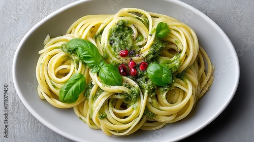 plate, pasta, green, sauce, basil, top, long, thin, italian, vegetarian, spaghetti, healthy, food, meal, diet, lunch, traditional, fresh, dish, dinner, cookery, mediterranean, parmesan, epicure, vegetable, italy, tasty, cheese, herb, delicious, pesto, ingredient, white, cooked, closeup, table, background, nourishment, leaf, view, culinary, receipe, tomatoes, homemade, eatery, oil, kitchen, organic, olive