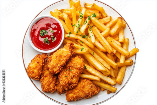 food, meal, fried, dinner, snack, sauce, unhealthy, plate, french, chicken, ketchup, meat, crispy, delicious, fast, breaded, closeup, chips, yellow, potato, fresh, cookery, lunch, nugget, background, crunchy, fillet, fat, fast food, tomatoes, gold, shaped, tasty, quick, macro, processed, junk food, white, hot, junk, table, red, fattening, nourishment, battered, baked, honey, eat