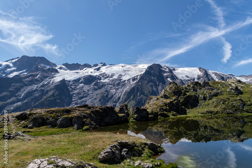 mountain, snow, landscape, nature, heaven, peak, alps, lake, rock, view, blue, vale, high, panorama, travel, glacier, winter, water, cloud, green, summer, beauty, europa, alpine