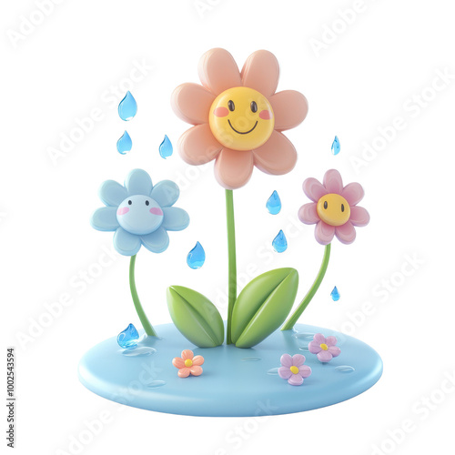 Playful and cheerful flowers with smiles, perfect for adding joy and color to any design or project., isolated on a transparent background.