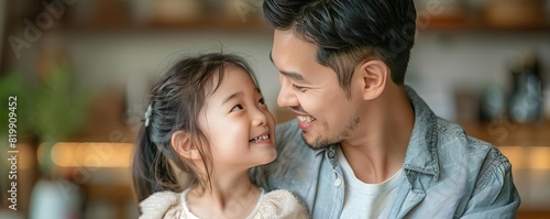 Playful and loving interaction between an Asian father and daughter, perfect for a family album