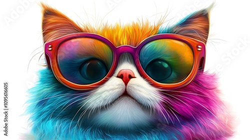 sunglasses, fun, cat, eye-catching, indoor, playful, pet, felino, vibrant, whimsical, expression, artistry, portrait, personality, cute, imagination, photo, humor, relaxation, joy, trend, contemporary, visual, unique, character