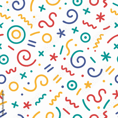 pattern, colourful, abstract, playful, design, doodle, seamless, geometric, circle, swirl, line, wave, star, dot, x, rhythmic, repeating, vibrant, bright, cheerful, fun, happy, shape, oval, spiral, pattern, hand-drawn, element, decor, background, illustration, texture, wallpaper, wrapping, party, celebration, festive, modern, unique, retro, whimsical, youthful, bold, dynamic, energetic, art, creative