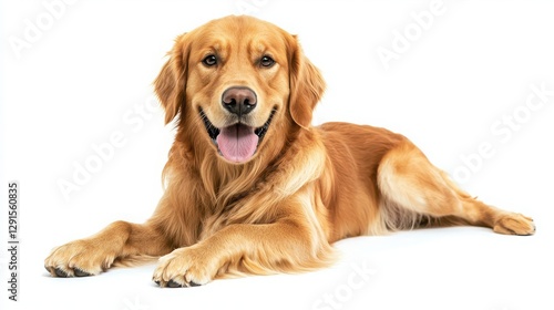 Playful golden retriever dog with shiny coat enjoying its day in a bright green park under clear blue sky