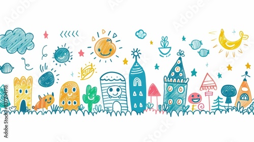 Playful hand-drawn doodle with whimsical shapes and characters, great for children's books or fun educational materials