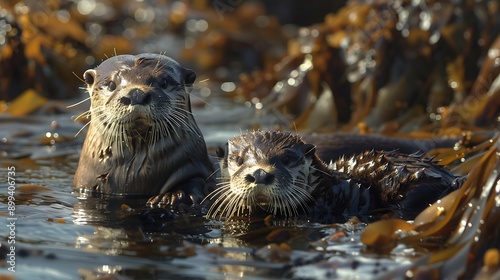 Playful Otters in a Tidal Pool: Coastal Exploration and Marine Life Delight