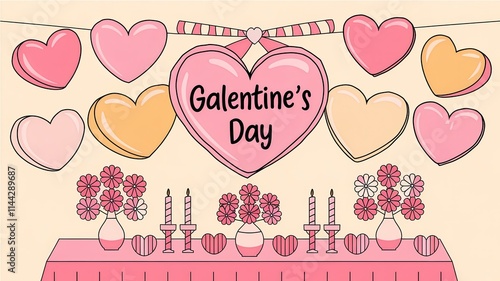 Playful Pastel Galentine s Day Banner with Candy Hearts and Floral