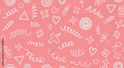 Playful Pink Doodle Pattern with Abstract Shapes A Whimsical, Vector-Based Design for Creative Projects