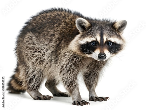 Playful Raccoon with Distinctive Mask and Ringed Tail Isolated on White Background Detailed Shot Showcasing the Animal s Unique Features