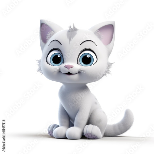 Playful Whiskers: Cute Adorable Cartoon Cat on White Background Generative AI