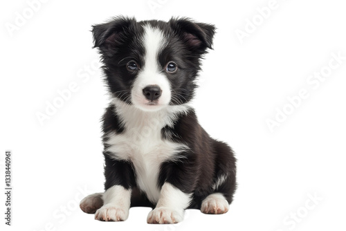 Playful young Border Collie puppy sitting on green grass in a sunny park showcasing adorable personality traits isolated on transparent background
