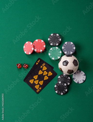 Playing blackjack or baccarat card game in casino with chips, bets and risk. Cards and chips