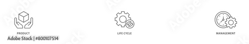 PLM icons set collection illustration of innovation, development, manufacture, delivery, cycle, analysis, planning, strategy, and improvement icon live stroke and easy to edit