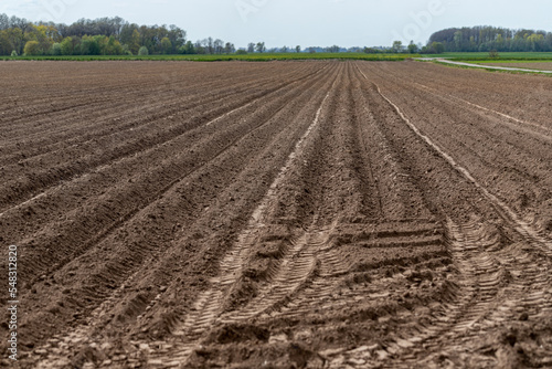 plowed agricultural field springtime Latvia, Zemgale flat fields. Boring Latvian landscape