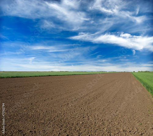 plowed field and blue sky