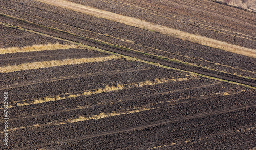 field, plowed, aerial, agricultural, view, up high, land, season, farm, agriculture, background, rural, environment, agronomy, countryside, cultivated, farming, nature, ground, dirtied, farmland, plant, work, landscape, drone, cultivation, aerial view, autumn, brown, country, dirt, texture, row, production, preparation, plowing, tractor, topview, ploughing, plantation, pattern, cultivating, organic, line, natural, machinery, machine, sowing