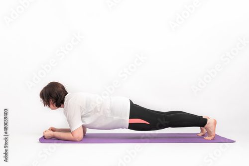 fats, girl, sport, woman, curvy, figure, stand, plank, healthy, lifestyle, excess, appearance, big, chubby, obesity, weight, corpulent, practicing, body, stretching, loss, young, overweight, aerobic, activewear, sport, fitness, fat, training, physical exercise, white background, copy space