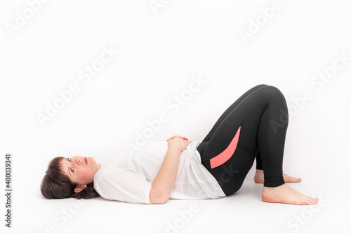 girl, young, woman, fats, overweight, excess, lie, sport, fat, weight, activewear, figure, t-shirt, sleepy, leggings, stretching, healthy, lifestyle, practicing, concept, back, physical exercise, fitness, chubby, appearance, big, training, obesity, corpulent, body, loss, aerobic, sport