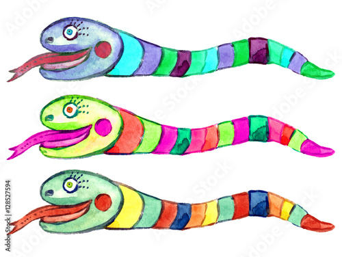 watercolor, snake, rainbow, plush, set, cartoon, illustration, cute, isolated, green, happy, symbol, fun, animal, tropical, funny, eye, tongue, red, character, danger, exotic, toy, dangerous, tail, jungle, reptile, snake, viper, python, anaconda, design, young, art, graphic, colourful, head, smiling, wild, wildlife, childhood, childish, stripped
