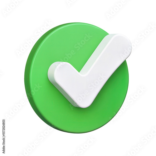 PNG 3D rendering, minimalist design, clean lines, green and white, checkmark symbol, simple shapes, bold graphics, modern aesthetic, geometric composition, solid colors, high contrast