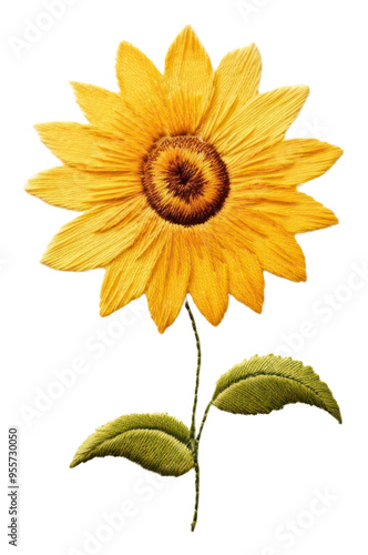 sunflower, plant, flower, nature, leaf, minimal, pattern, fabric, daisy, embroidery, yellow, white, art, clean, blossom, textile, growth, photo, freshness, fragility, closeup, transparent, element, pollen, aster, style, creativity, flower head, studio shot, inflorescence, asteraceae, hand-made, isolated, cut-out, botany, raw, needlecraft, handcraft