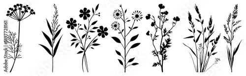 floral pattern, illustration, silhouette, transparent, background, collection, botanical, isolated, elegant, element, flower, design, floral, leaf, nature, black, decor, mixed, plant, art, set, elegance