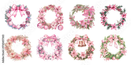 PNG Elegant pink Christmas wreaths collection, element set on transparent background