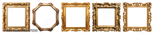 transparent, collection, isolated, antique, baroque, classic, elegant, element, vintage, design, frame, gold, ornate, simple, square, decor, mixed, photo, style, gold, art, old, set, decorative