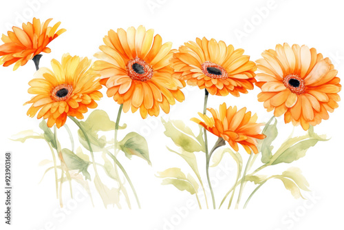 flower, plant, sunflower, nature, daisy, creativity, painting, blossom, border, botany, yellow, closeup, watercolor, illustration, watercolor, calendula, growth, orange, aster, space, white, freshness, fragility, vibrant color, asteraceae, transparent, graphic, element, bottom, pollen, orange color, flower head, studio shot, inflorescence, isolated, cut-out, gerbera, blank, style, top