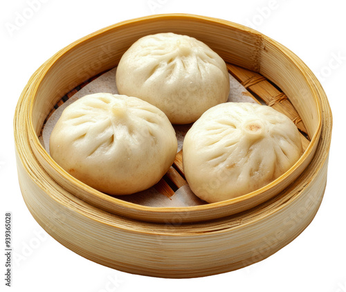 PNG Freshly steamed buns in a bamboo basket