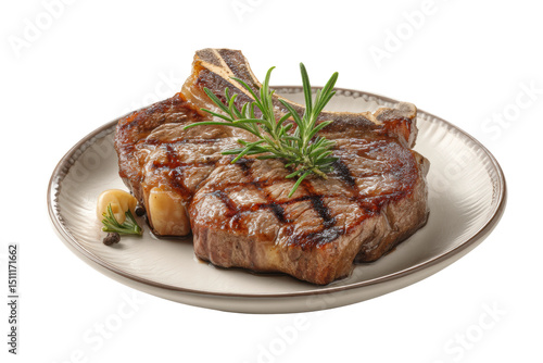 PNG Grilled t-bone steak with rosemary and garlic on plate