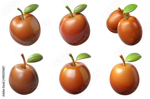 PNG jujube 3d collection, in cartoon style minimal on transparent, white background, isolate