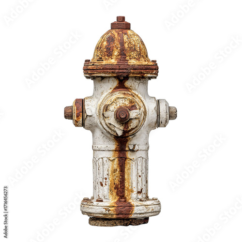 PNG of A weathered, rusty fire hydrant featuring a vintage design with peeling paint and rust spots, evoking a sense of nostalgia.