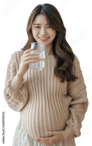 portrait, drink, person, face, woman, clothing, pregnant, adult, photo, sweater, happy, human, photo, smile, water, head, milk, asian, body, cold drink, casual clothes, refreshment, transparent, young adult, coiffure, happiness, long hair, beverage, standing, apparel, holding, looking, smiling, bottle, sleeve, white, cup, day, anticipation, relaxation, outerwear, drinking, isolated, knitwear, dimple