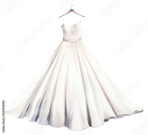 fashion, wedding, dress, celebration, watercolor, clothing, paper, white, illustration, minimal, textile, gown, elegance, bridal gown, still life, shopping, cut-out, adult, event, downloadable, haute couture, transparent, apparel, graphic, hanging, simple, evening gown, bridal gown, studio shot, life events, coathanger, isolated, bride, honeymooners, glamour, hd, hi-res