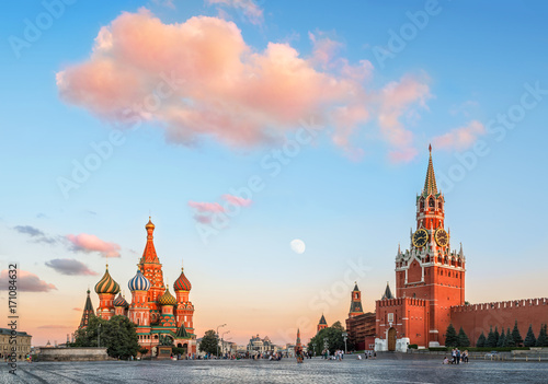 russia, moscow, capital city, architecture, tour tourism, city, city landscape, tourist attraction, summer, red square, kremlin, pavement, cathedral, sunset, evening, cloud, pink
