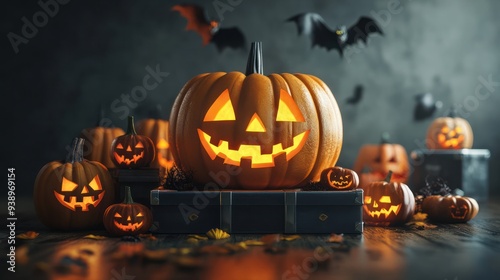 PODIUM 3D RENDER 3D RENDER ADVERTISING ILLUSTRATION OF HALLOWEEN AND BLACK FRIDAY PRODUCTS