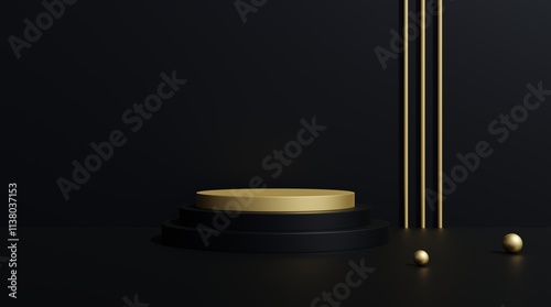 podium black and gold Black background for advertising various exhibition products. 3D illustration