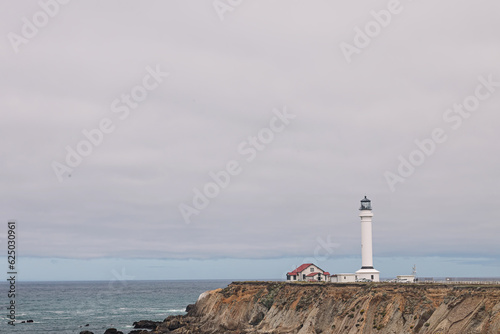 lighthouse, coast, landscape, california, ocean, pacific, attraction, cloudy, wave, cliff, foggy, coastal, historic, scenic, green, travel, light, water, coastline, sea, rock, white, house, beach, blue, island, tower, landmark, wave, safety, shore, us