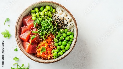 food, tuna, poke, hawaiian, meal, fish, bowl, lunch, salad, seafood, healthy, cucumber, rice, diet, sesame, avocado, asian, vegetable, raw, dinner, japanese, sushi, snack, topview, green, organic, marinated, seaweed, radish, dish, salmon, cookery, fresh, vegetarian, soy, background, sauce, seed, chopstick, vegetarian, pickled, ingredient