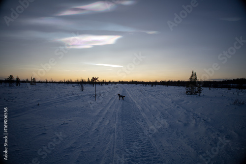 sky, background, cloud, winter, rainbow, iridescent, light, weather, nature, beautiful, blue, meteorology, sunlight, landscape, stratosphere, atmosphere, norge, climate, phenomena, sun, sunset, blue skies, diffraction, halo, sunrise, pearl, rare, environment, dawn, cloud, wild, scenic, cloudscape, beauty, day, horizon, yellow, high, colourful, fluffy, orange, iridescence, water, cloudy